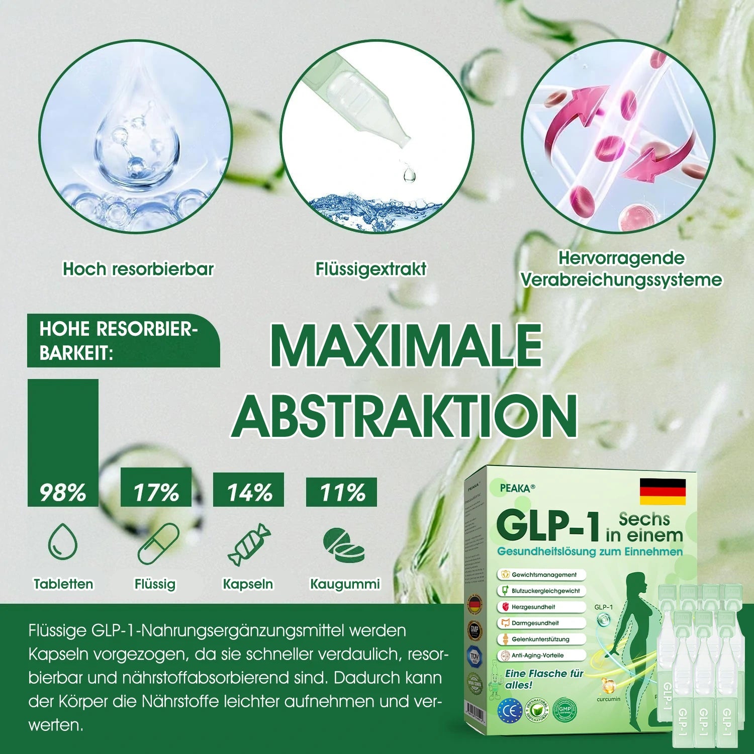Die Suche nach einer echten Alternative war frustrierend. Als ich auf die GLP-1 SIX-IN-ONE Oral Liquid Lรถsung stieร, war ich zunรคchst skeptisch. Aber die Erfahrungsberichte haben mich รผberzeugt, es wenigstens zu versuchen.
